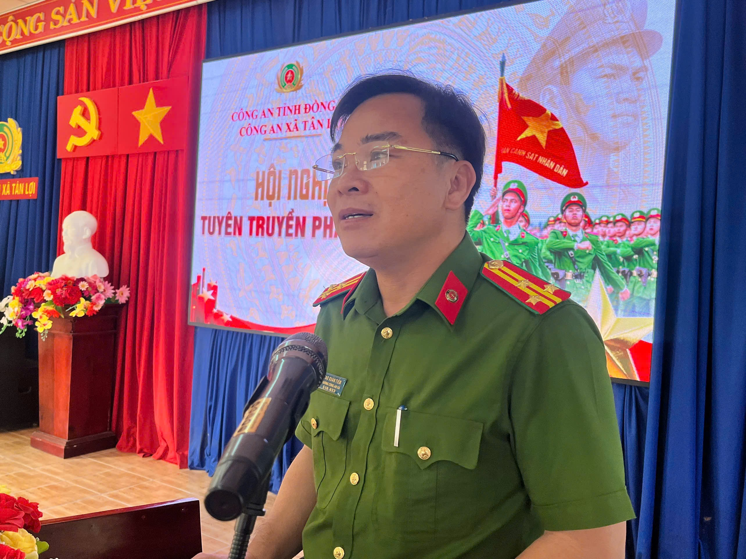 Chiều ngày 08/01/2025, tại Hội trường Công an xã, Công an xã Tân Lợi đã tổ chức Hội nghị tuyên truyền, phổ biến pháp luật cho các công ty, doanh nghiệp trên địa bàn xã Tân Lợi. Tham dự Hội nghị có các đồng chí chỉ huy, toàn thể cán bộ, chiến sỹ và khoảng hơn 100 doanh nghiệp, cơ sở kinh doanh trên địa bàn xã Tân Lợi.Toàn cảnh Hội nghịTại Hội nghị tuyên truyền, Công an xã Tân Lợi đã thông tin đến đại diện các công ty, doanh nghiệp về đặc điểm địa bàn, tình hình tội phạm và vi phạm pháp luật trên địa bàn xã trong thời gian gần đây, đặc biệt là một số tội phạm, vi phạm pháp luật thường xảy ra trong ngành nghề kinh doanh có điều kiện. Đồng thời, cán bộ Công an xã đã phổ biến các quy định của pháp luật liên quan đến ngành nghề đầu tư kinh doanh có điều kiện về an ninh trật tự, nhấn mạnh những hành vi bị nghiêm cấm và trách nhiệm của chủ cơ sở trong việc chấp hành các quy định về đăng ký, quản lý cư trú, trật tự an toàn giao thông, phòng cháy chữa cháy, phòng chống tội phạm và tệ nạn xã hội. Bên cạnh đó, Công an xã cũng lắng nghe, trao đổi, giải đáp những khó khăn, vướng mắc của các công ty, doanh nghiệp, giúp chủ cơ sở duy trì hoạt động kinh doanh đúng quy định pháp luật. Sau phần tuyên truyền, đại diện các cơ sở kinh doanh đã tiến hành ký cam kết thực hiện nghiêm các quy định của pháp luật; không để xảy ra các hành vi vi phạm pháp luật, tệ nạn xã hội tại cơ sở; chấp hành đầy đủ các điều kiện về an ninh, trật tự, phòng cháy chữa cháy; đồng thời tích cực phối hợp, cung cấp thông tin cho lực lượng Công an khi có vụ việc liên quan đến an ninh, trật tự.Thượng tá Cao Xuân Tiềm - Bí thư Đảng uỷ, Trưởng Công an xã phát biểu tại Hội nghị.Hội nghị tuyên truyền, phổ biến pháp luật là hoạt động thiết thực, góp phần nâng cao nhận thức, củng cố niềm tin của Nhân dân vào lực lượng Công an; đồng thời tạo sự đồng thuận trong quần chúng nhân dân đối với công tác giữ gìn an ninh trật tự, phòng ngừa tội phạm và tệ nạn xã hội trên địa bàn xã./.
