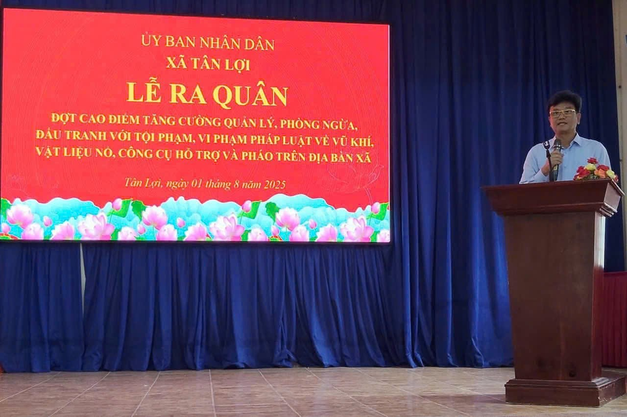 XÃ TÂN LỢI TỔ CHỨC LỄ RA QUÂN ĐỢT CAO ĐIỂM TĂNG CƯỜNG QUẢN LÝ, PHÒNG NGỪA, ĐẤU TRANH VỚI TỘI PHẠM, VI PHẠM PHÁP LUẬT VỀ VŨ KHÍ, VẬT LIỆU NỔ, CÔNG CỤ HỖ TRỢ VÀ PHÁO TRÊN ĐỊA BÀN XÃ