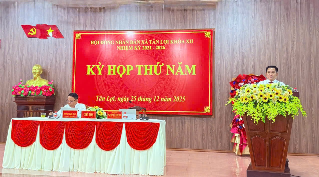 Sáng ngày 25/12/2025, Hội đồng nhân dân xã Tân Lợi khóa XII, nhiệm kỳ 2021 - 2026 đã tổ chức Kỳ họp thứ Năm (kỳ họp cuối năm 2025) tại Hội trường UBND xã Tân Lợi. Kỳ họp được tổ chức nhằm đánh giá tình hình thực hiện nhiệm vụ phát triển kinh tế - xã hội năm 2025 và quyết định các nội dung quan trọng cho năm 2026.