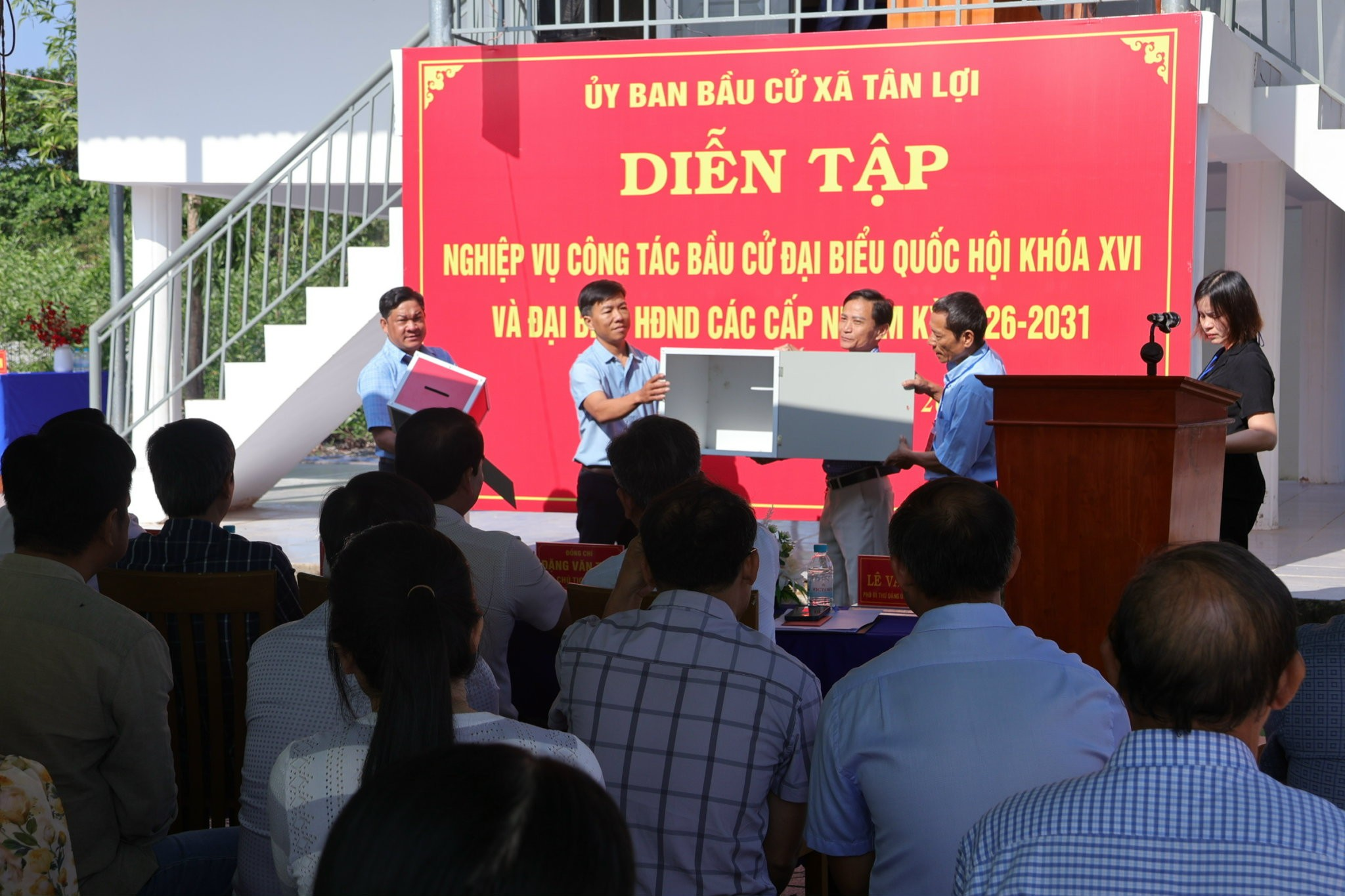 Sau phần diễn tập, Ban Chỉ đạo và Ủy ban bầu cử xã đã tổ chức họp rút kinh nghiệm, đánh giá kết quả thực hiện, chỉ ra những hạn chế cần khắc phục nhằm đảm bảo công tác tổ chức bầu cử trên địa bàn xã diễn ra đúng quy định, an toàn, dân chủ và đúng pháp luật.
