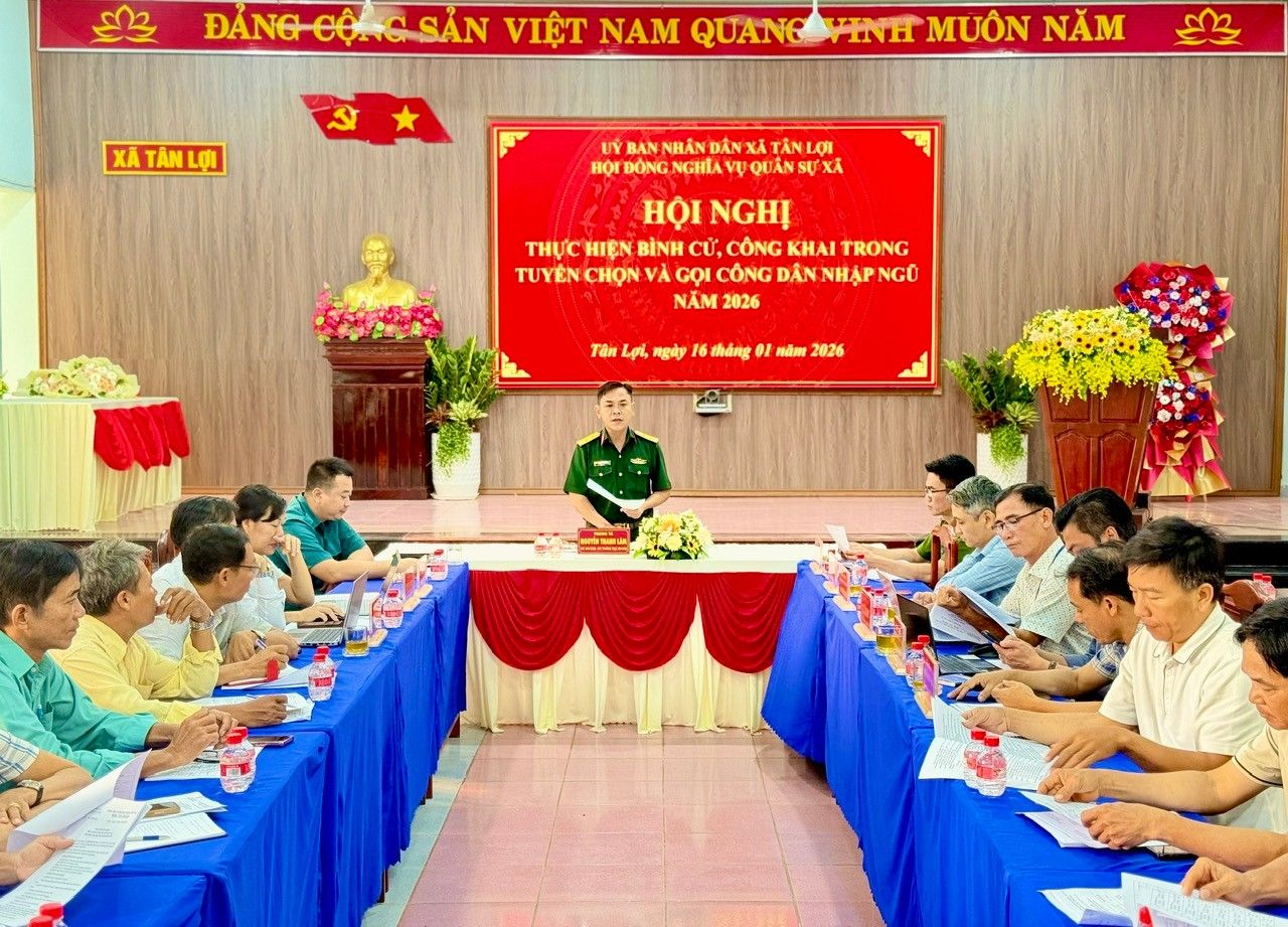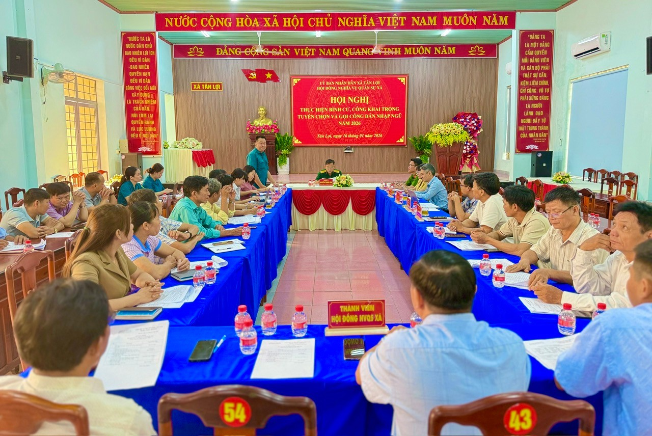 Sáng ngày 16/01/2026, tại Hội trường UBND xã Tân Lợi, Hội đồng Nghĩa vụ quân sự xã long trọng tổ chức Hội nghị bình cử, công khai trong tuyển chọn và gọi công dân nhập ngũ năm 2026.