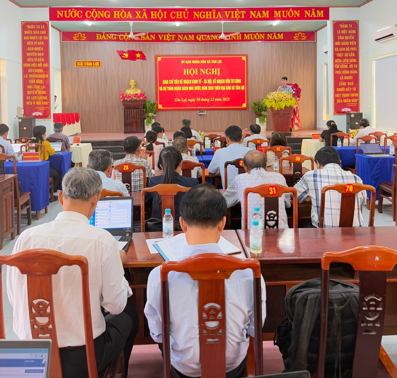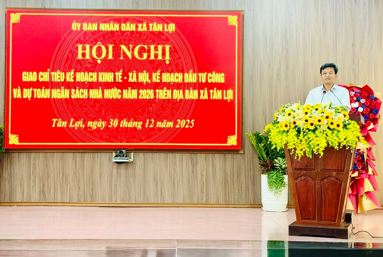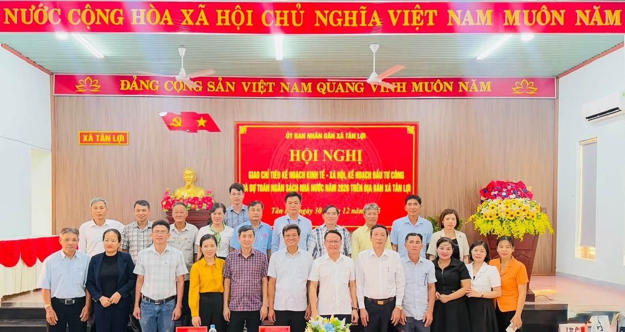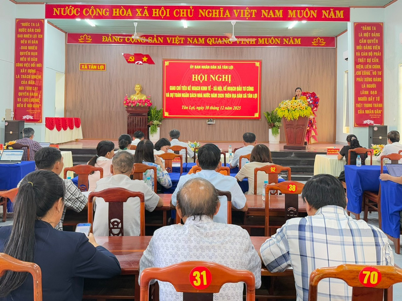 Chiều ngày 30/12/2025, tại Hội trường A - Ủy ban nhân dân xã Tân Lợi đã tổ chức Hội nghị giao chỉ tiêu Kế hoạch phát triển kinh tế - xã hội, kế hoạch đầu tư công và dự toán ngân sách nhà nước năm 2026 trên địa bàn xã.
