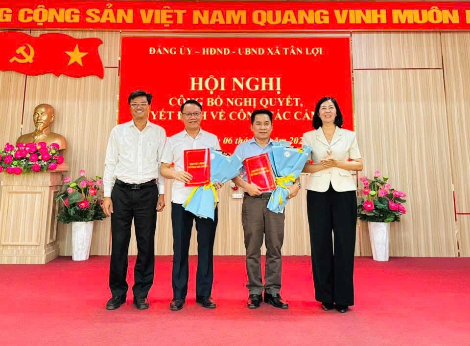 Chiều ngày 6/4, Đảng ủy, HĐND, UBND xã Tân Lợi tổ chức Hội nghị trao quyết định về công tác cán bộ. Dự hội nghị có Thường trực Đảng ủy; các đồng chí Ủy viên Ban Thường vụ Đảng ủy; Thường trực HĐND, UBND xã; lãnh đạo các Ban của HĐND; cán bộ, công chức Ban Xây dựng Đảng, Văn phòng HĐND và UBND xã; lãnh đạo Phòng Văn hóa và Xã hội.