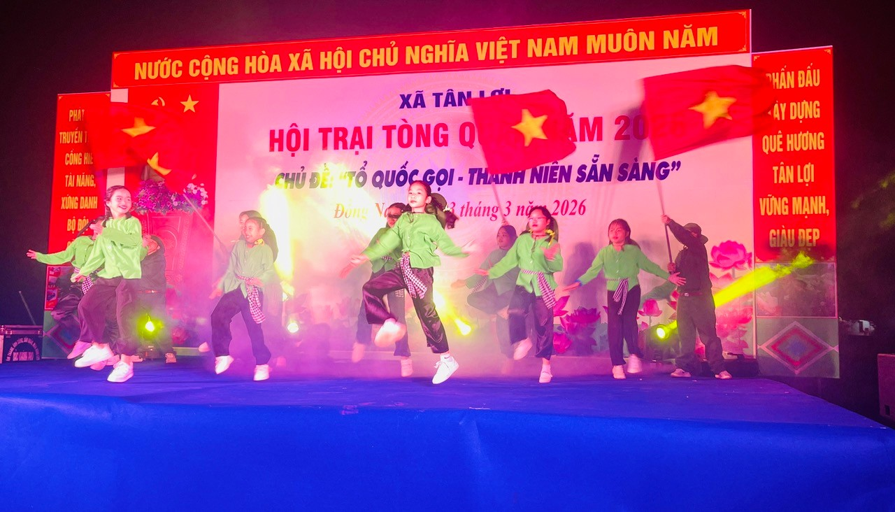 Tối ngày 03/3/2026, tại Sân vận động xã Tân Lợi, “Đêm Hội trại tòng quân” năm 2026 đã diễn ra trong không khí trang trọng, ấm áp và đầy khí thế tuổi trẻ, tạo dấu ấn sâu sắc trước ngày các thanh niên địa phương lên đường thực hiện nghĩa vụ quân sự.