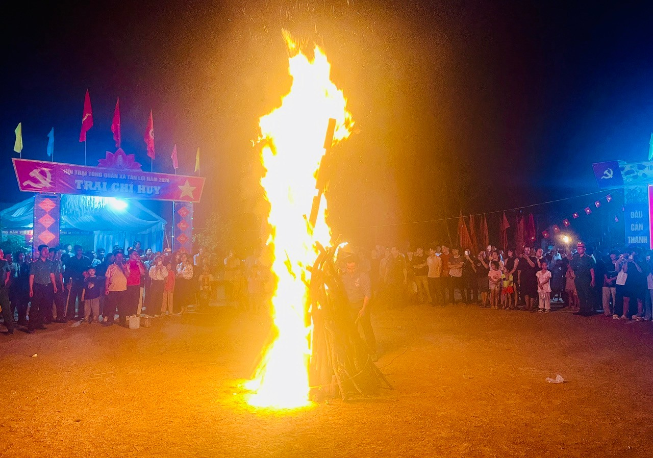 Điểm nhấn xúc động của đêm hội là nghi thức đốt lửa trại truyền thống. Ngọn lửa bừng sáng giữa sân vận động không chỉ tượng trưng cho tinh thần đoàn kết, ý chí quyết tâm mà còn là lời nhắn gửi niềm tin của quê hương đối với thế hệ trẻ. Trong ánh lửa hồng, các tân binh cùng đoàn viên, thanh niên quây quần giao lưu, ca hát, chia sẻ quyết tâm rèn luyện, phấn đấu hoàn thành tốt nhiệm vụ trong môi trường quân đội.