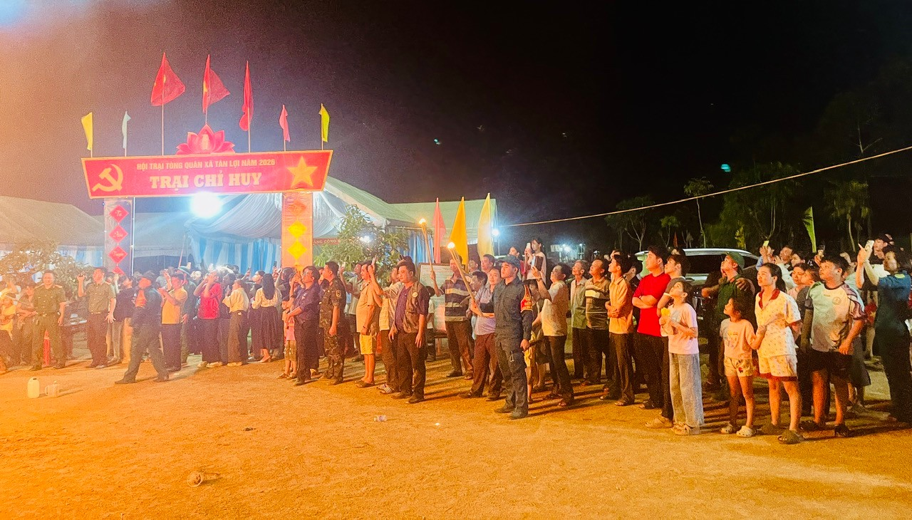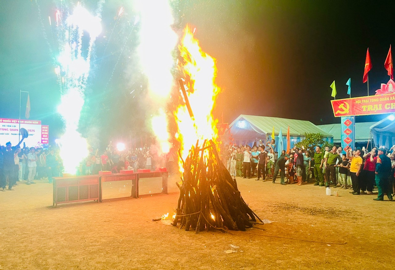 Ngay sau nghi thức lửa trại là màn bắn pháo hoa chào mừng rực rỡ, thắp sáng bầu trời đêm Tân Lợi. Những chùm pháo hoa lung linh đã khép lại chương trình trong niềm hân hoan, phấn khởi, đồng thời gửi gắm sự động viên, kỳ vọng của cấp ủy, chính quyền và Nhân dân địa phương đến các thanh niên chuẩn bị lên đường thực hiện nghĩa vụ thiêng liêng bảo vệ Tổ quốc.