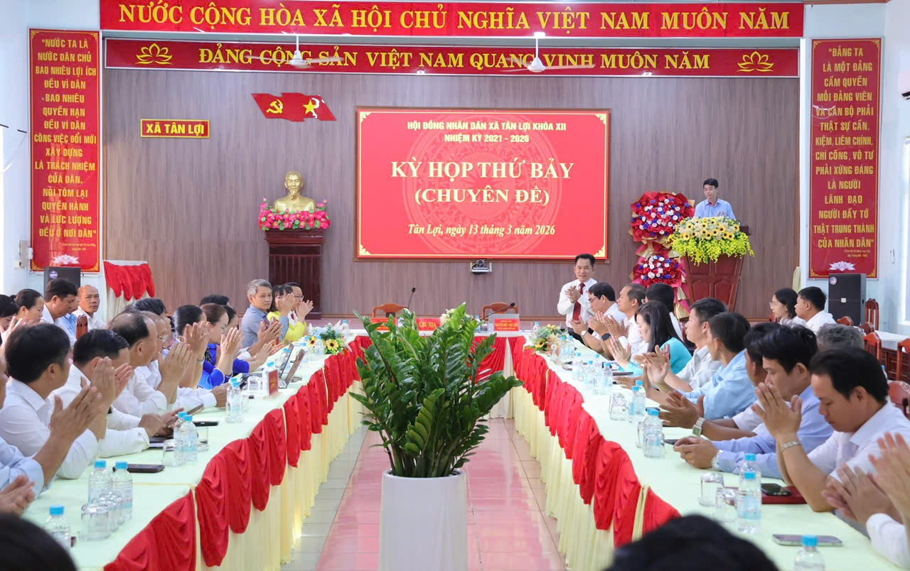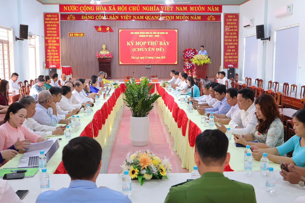 <p style="margin-left:0cm;text-align:justify;">Sáng ngày 13/3/2026, tại Hội trường A - UBND xã, Hội đồng nhân dân xã Tân Lợi khóa XII, nhiệm kỳ 2021-2026 tổ chức Kỳ họp thứ Bảy (chuyên đề) nhằm xem xét, quyết định một số nội dung quan trọng thuộc thẩm quyền của HĐND xã.&nbsp;</p>