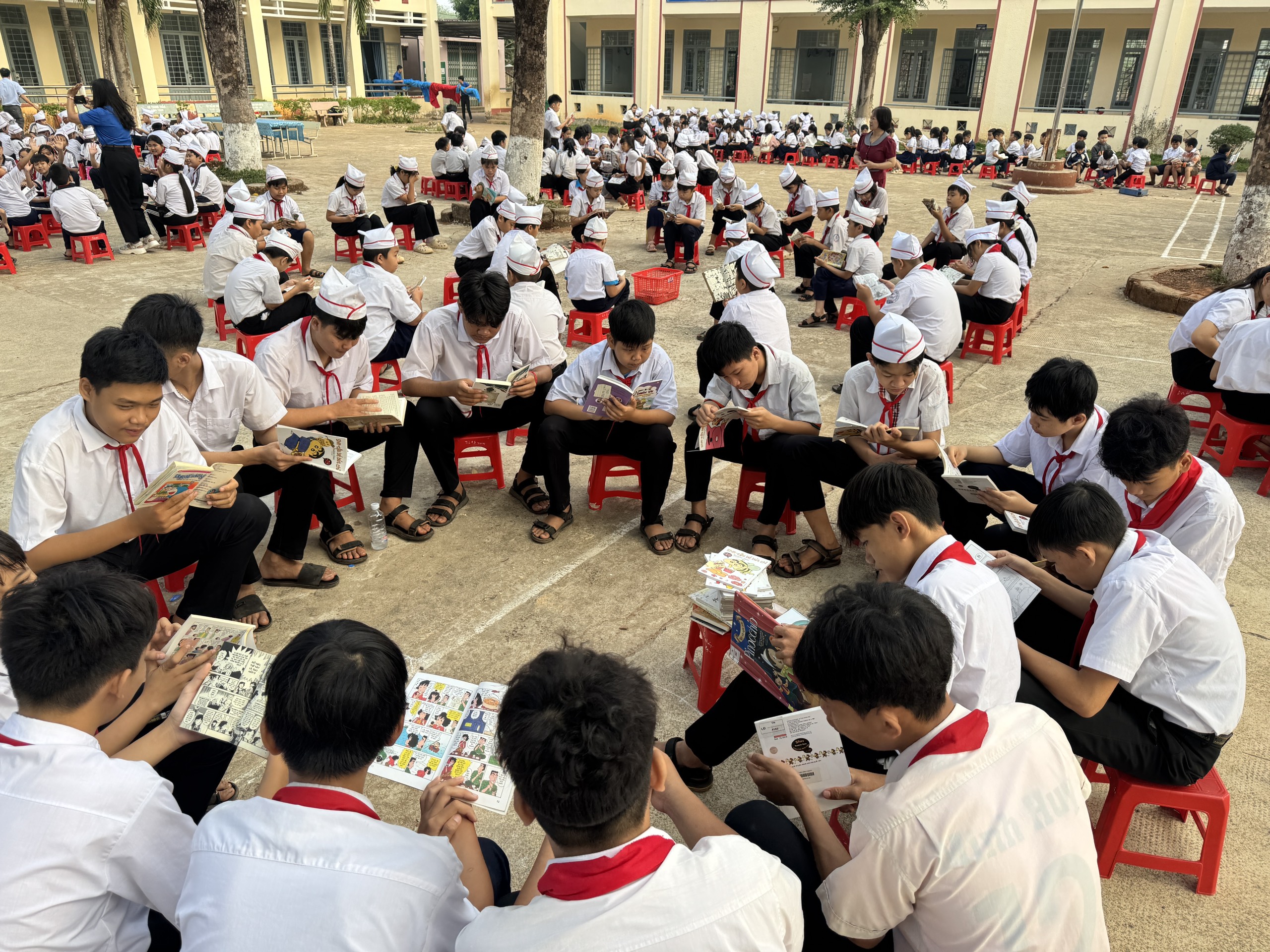 <span style="font-family:Calibri,sans-serif"><span style="font-family:&#039;Times New Roman&#039;,serif">Với mong muốn đưa sách đến gần hơn với lứa tuổi học đường, Thư viện tỉnh Đồng Nai đã chuẩn bị chuyến xe thư viện lưu động cùng hàng trăm đầu sách phong phú, đa dạng về thể loại: từ văn học, lịch sử, khoa học khám phá, cho đến kỹ năng sống và truyện tranh giải trí. Sự xuất hiện của những cuốn sách mới lạ đã nhanh chóng thu hút sự chú ý và sự hào hứng tham gia của đông đảo các em học sinh Trường TH&amp;THCS Tân Hưng.</span></span><br />