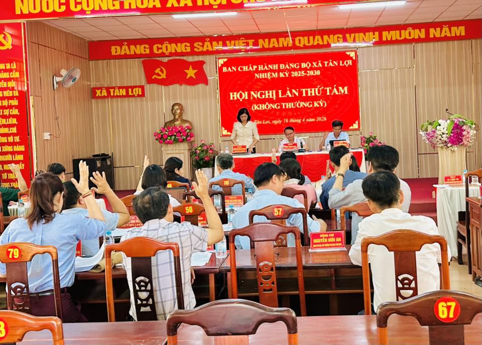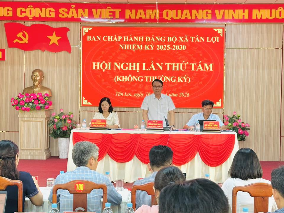 <div style="text-align: justify;"><span style="font-size:16px;">Sáng 16/4, Ban Chấp hành Đảng bộ xã Tân Lợi tổ chức Hội nghị lần thứ Tám (chuyên đề) nhằm xem xét, cho ý kiến đối với các nội dung quan trọng về công tác tổ chức cán bộ và nhiệm vụ chính trị của địa phương.</span><br />