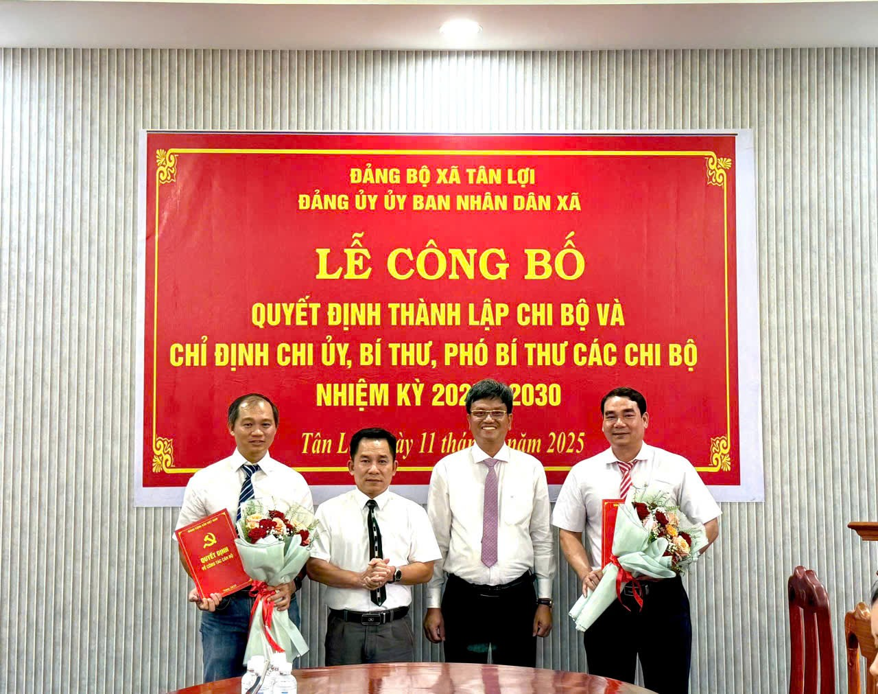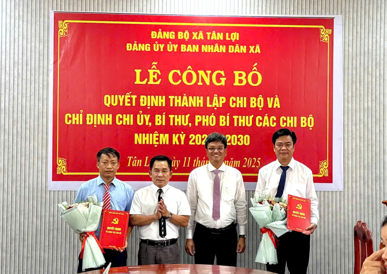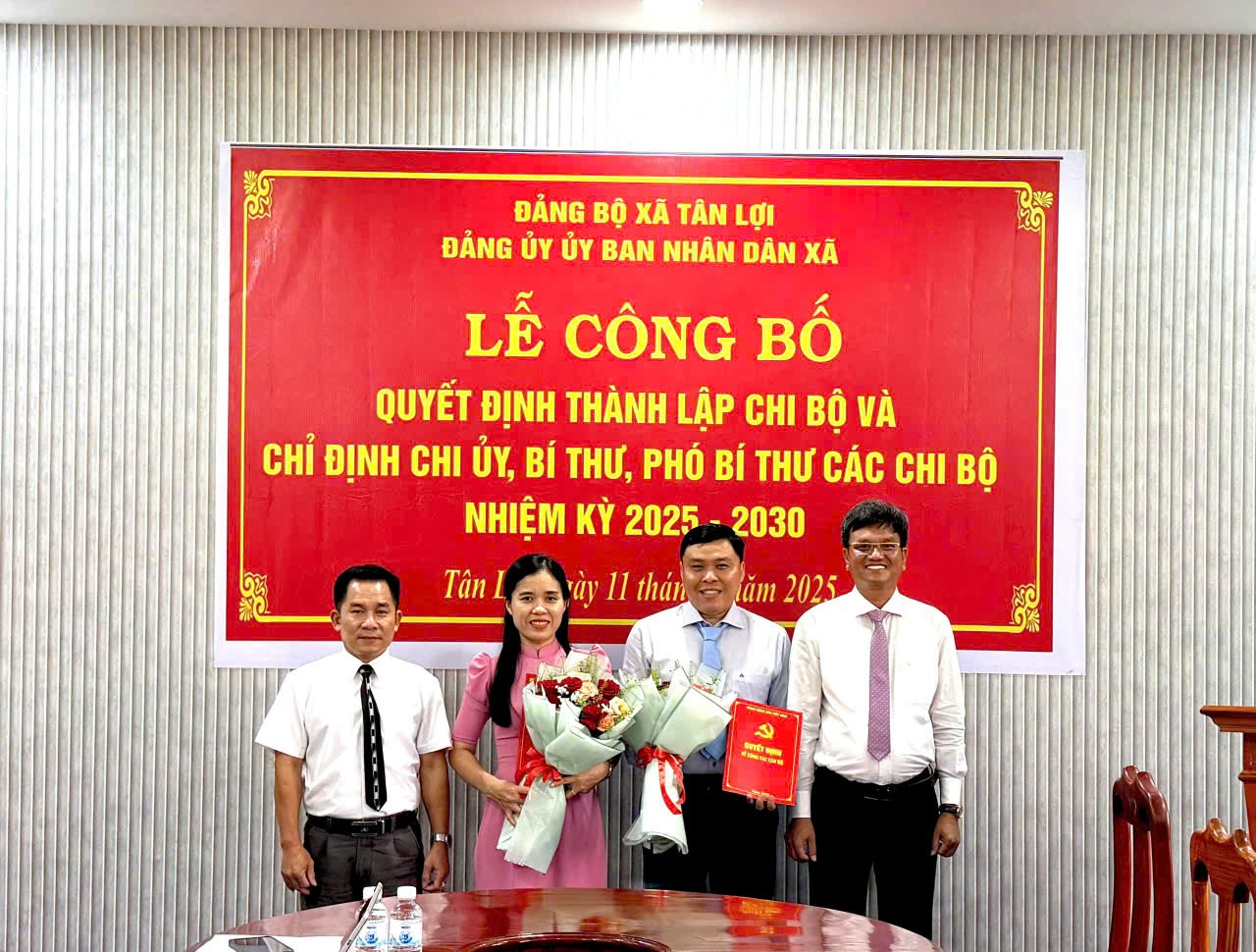 Tại Hội nghị, Đảng ủy Uỷ ban Nhân dân xã đã công bố quyết định thành lập các Chi bộ trực thuộc Đảng uỷ UBND xã, và quyết định chỉ định cấp ủy, Bí thư, Phó Bí thư của các Chi bộ khóa đầu tiên. Đây là bước kiện toàn sau khi xã Tân Lợi được thành lập trên cơ sở sáp nhập các đơn vị hành chính, bảo đảm sự lãnh đạo thống nhất, toàn diện trong các cơ quan Đảng của xã.