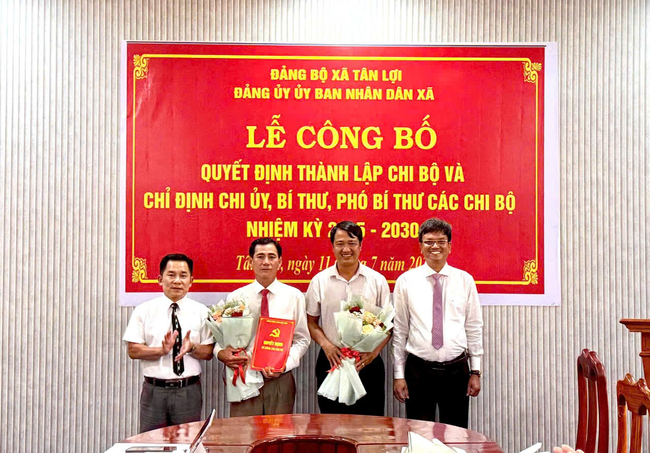 Vừa qua ngày 11/7/2025 Đảng uỷ UBND xã Tân Lợi long trọng tổ chức lễ công bố Quyết định thành lập các Chi bộ mới và chỉ định cấp ủy các Chi bộ trực thuộc, nhiệm kỳ 2025 – 2030.