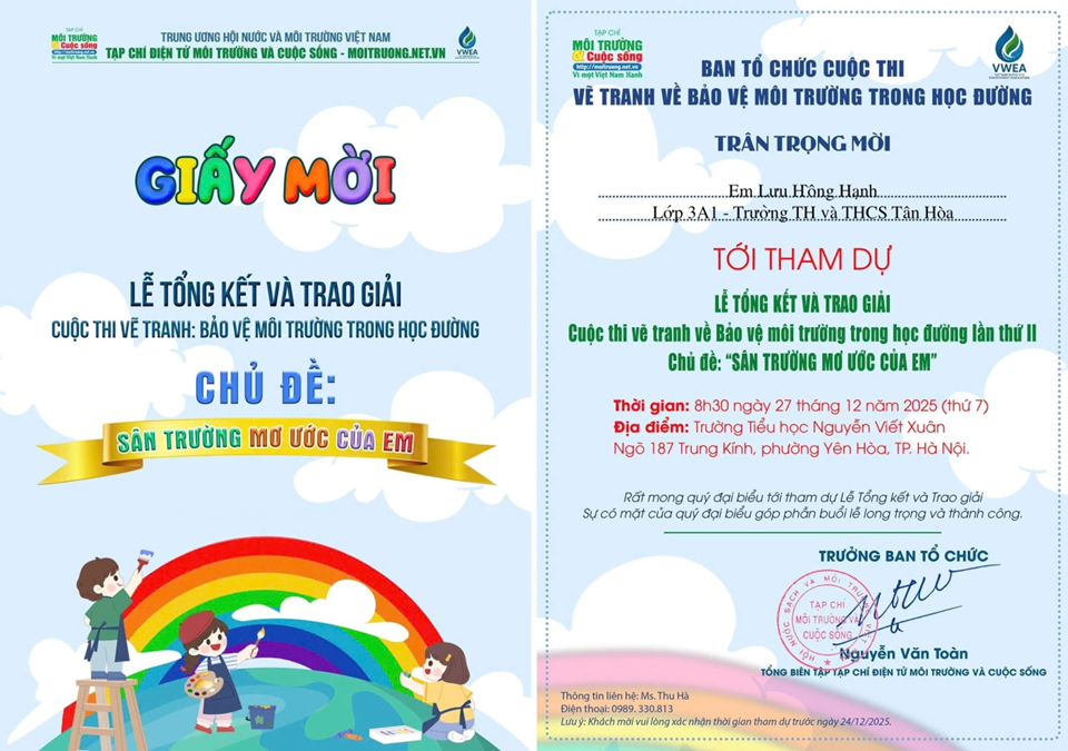 Vinh dự cho ngành giáo dục địa phương, em Lưu Hồng Hạnh, học sinh lớp 3 Trường TH&THCS Tân Hòa, là một trong hai học sinh của tỉnh Đồng Nai đạt giải tại Cuộc thi. Ngày 27/12/2025, em được mời tham dự Lễ trao giải Cuộc thi tổ chức tại Trường Tiểu học Nguyễn Viết Xuân, phường Yên Hòa, thành phố Hà Nội.