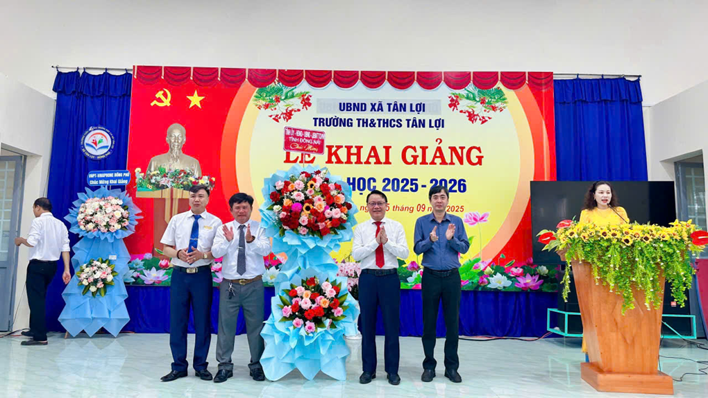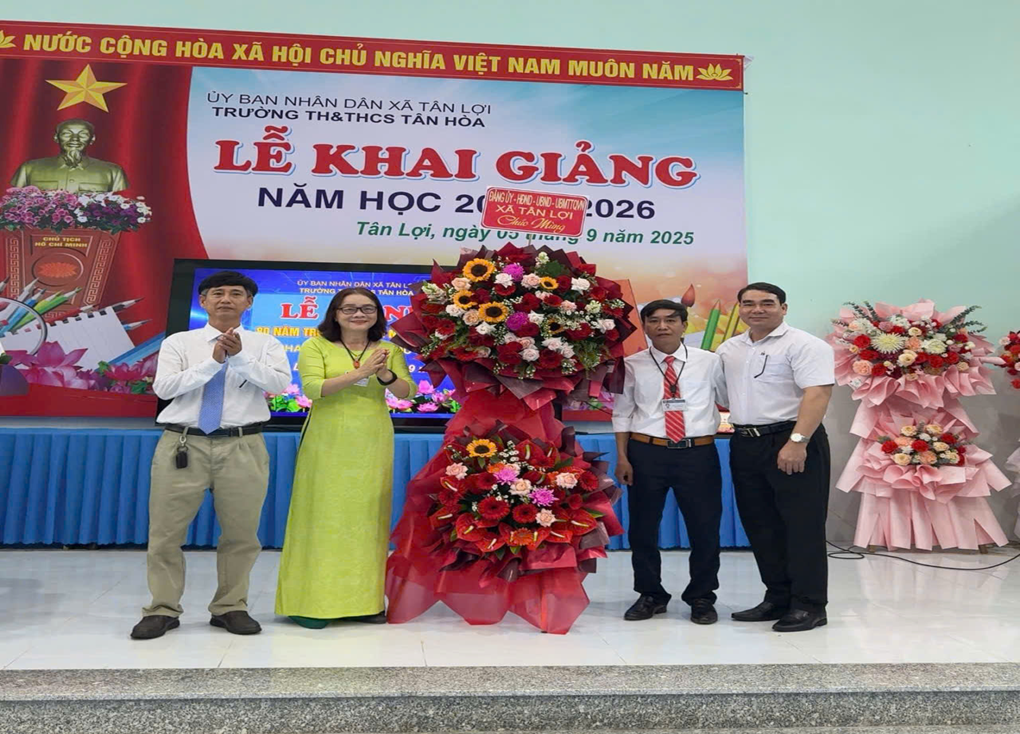 Dưới đây là chum ảnh của buổi lễ:Bà Ngô Thị Thanh Chung, Phó Bí thư Thường trực Đảng ủy xã tặng hoa chúc mừng Trường MN Tân Hòa Ông Đặng Văn Tiến - Phó Chủ tịch UBND xã tặng hoa chúc mừng Trường TH & THCS Tân HòaTrường TH&THCS Tân Lợi đón học sinh lớp 1 Không khí hân hoan rộn ràng khắp sân trường Mầm Non Tân HòaKhông khí khai giảng tại Trường TH&THCS Tân Lợi Không khí khai giảng tại Trường Mầm non Tân Hưng.