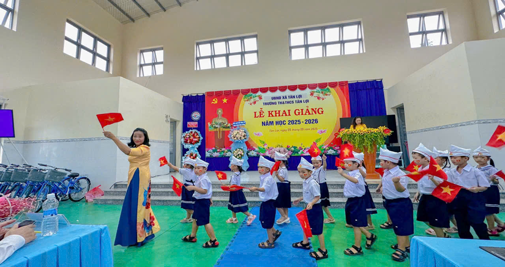 Sáng nay, ngày 5/9/2025, hơn hai nghìn học sinh trên địa bàn xã Tân Lợi đã hân hoan dự Lễ Khai giảng đặc biệt kết hợp Lễ kỷ niệm 80 năm thành lập Bộ Quốc gia Giáo dục được các trường kết nối trực tuyến với VTV1 từ Trung tâm Hội nghị Quốc gia (Hà Nội)