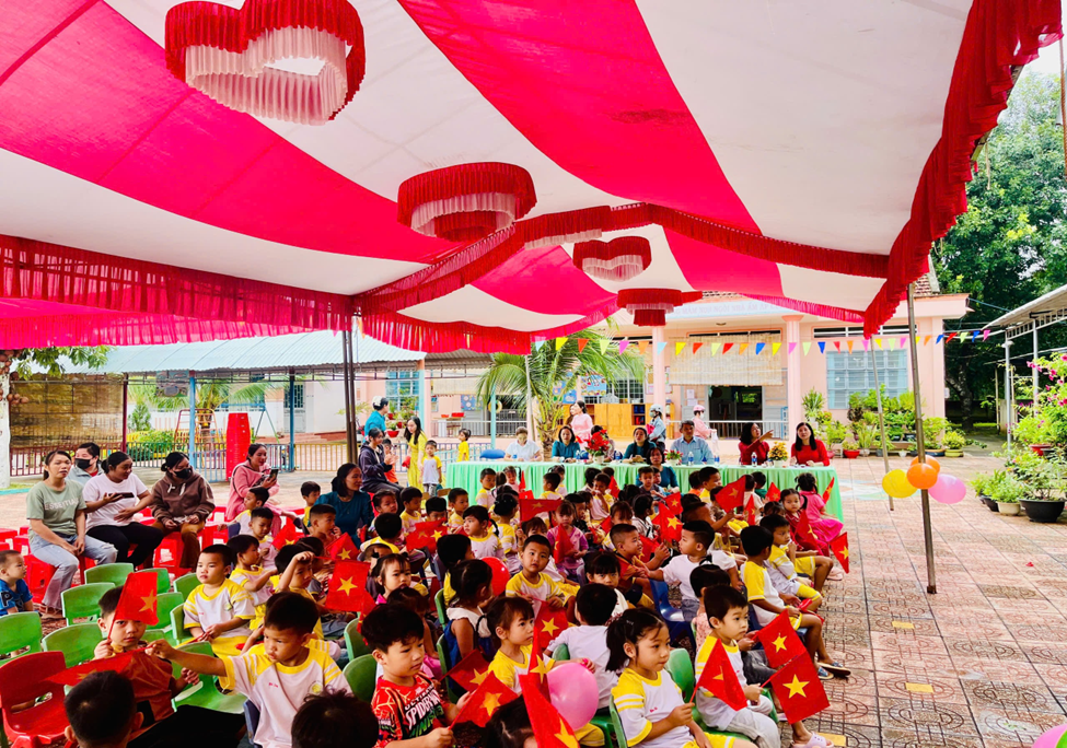 Sau phần hoạt động chung của nhà trường các lớp mầm non bố trí cho trẻ dự khai giảng tại lớp học, theo dõi qua màn hình tivi. Học sinh tiểu học và trung học cơ sở tập trung tại sân trường, hội trường theo dõi qua màn hình tivi lớn.