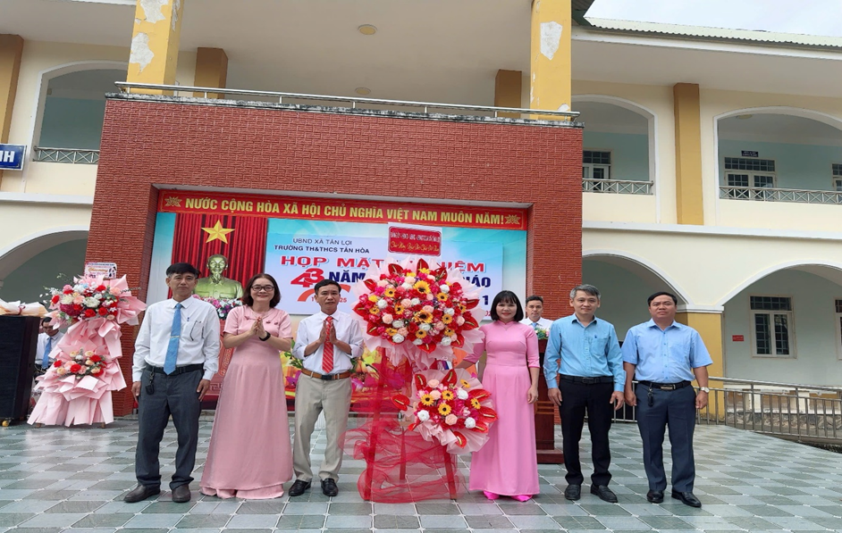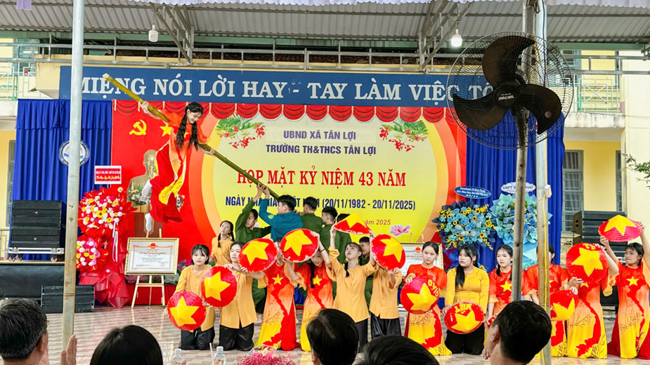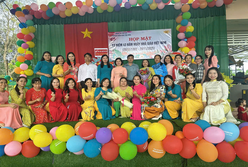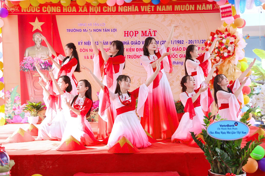 tại Trường Mầm non Tân HòaTrường TH&THCS Tân Lợi Trong không khí hân hoan của buổi lễ, học sinh TH&THCS Tân Lợi đã biểu diễn các tiết mục văn nghệ, gửi gắm các món quà, lời chúc và cái ôm yêu thương đến với thầy cô đang giảng dạy dưới mái trường.