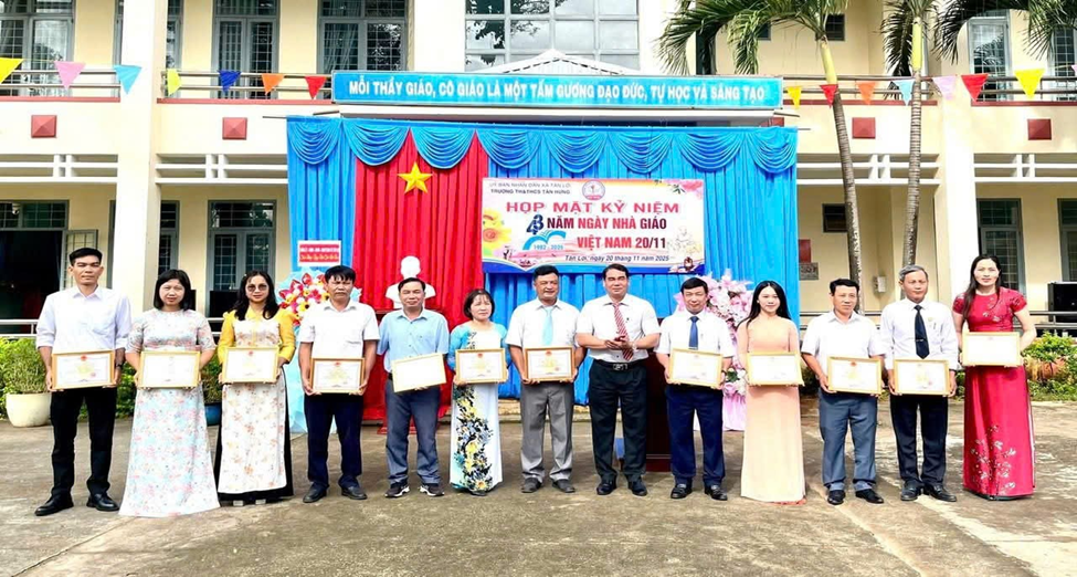 Trao danh hiệu thi đua và Giấy khen cho các giáo viên Trường TH&THCS Tân HưngTrường Mầm non Tân Hòa Trong không khí hân hoan của buổi lễ, học sinh Mầm non Tân Hòa đã biểu diễn các tiết mục văn nghệ, gửi gắm các món quà, lời chúc và cái ôm yêu thương đến với thầy cô đang giảng dạy dưới mái trường. Tiết mục văn nghệ của các bé Trường Mầm non Tân HòaĐại biểu chụp hình lưu niệm trong buổi Họp mặt ngày Nhà giáo Việt Nam