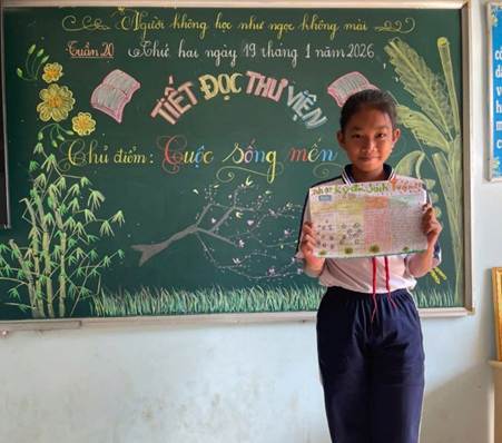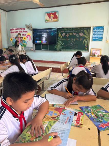 Thông qua tiết đọc thư viện, học sinh các lớp không chỉ được rèn luyện kỹ năng đọc hiểu, kỹ năng nghe - nói, mà còn hình thành thói quen đọc sách, niềm yêu thích sách và tinh thần tự học. Đây là nền tảng quan trọng góp phần nâng cao chất lượng giáo dục toàn diện, phát triển văn hóa đọc trong nhà trường.