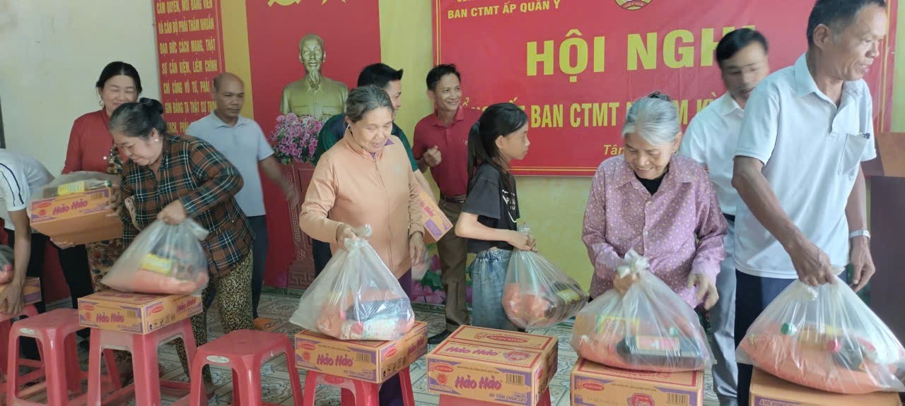 Phát biểu tại buổi tặng quà, Ông Vũ Trọng Ấm Trưởng ban công tác mặt trận Ấp Quân Y chia sẻ “Mong rằng những phần quà nhỏ này sẽ phần nào giúp bà con có thêm chút động lực vươn lên trong cuộc sống”