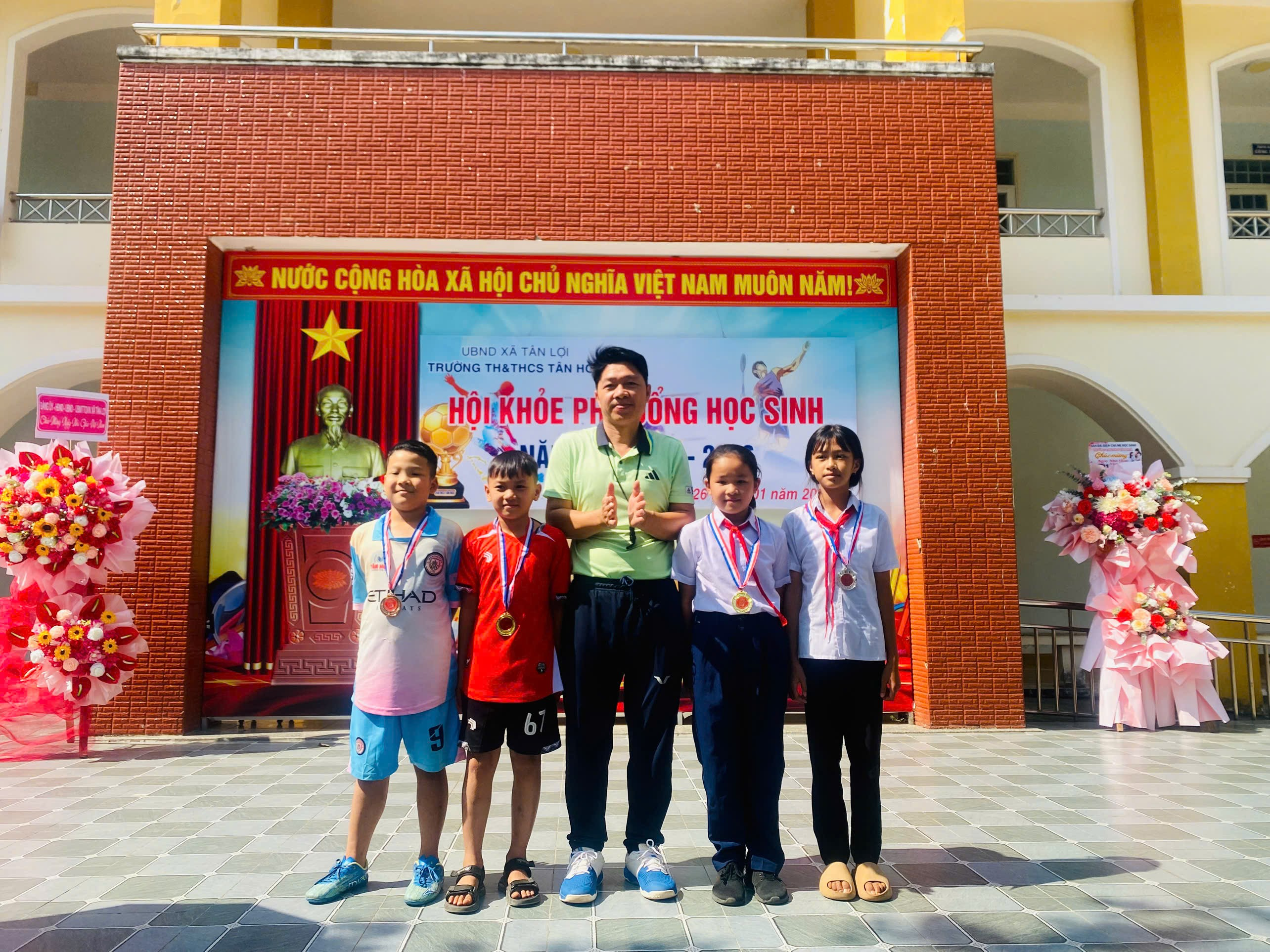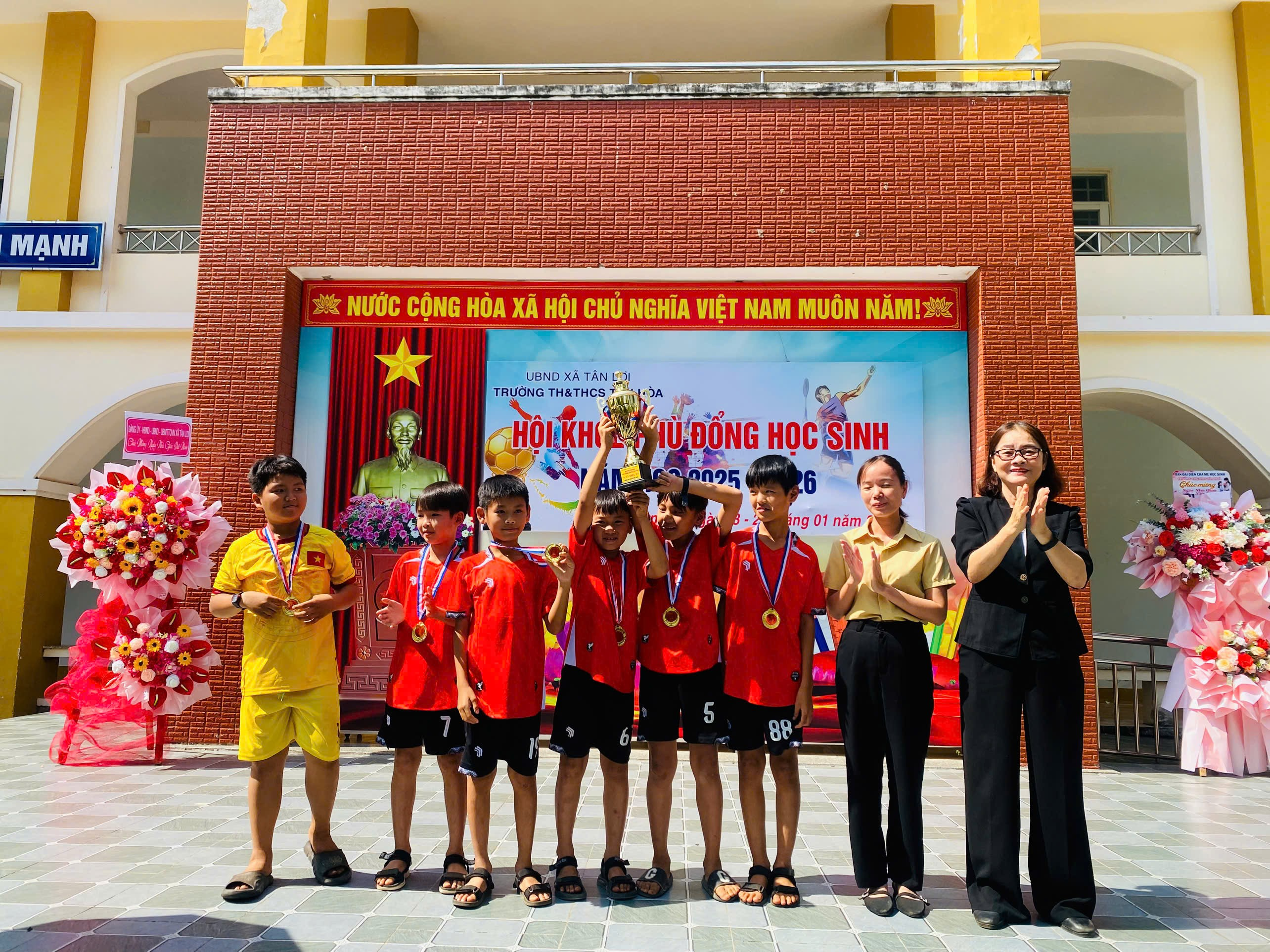 Trường TH & THCS Tân Hòa tổ chức thành công hội khỏe Phù Đổng cấp trường năm học 2025 – 2026 được diễn ra từ ngày 23 tháng 1 năm 2026 đến ngày 25 tháng 1 năm 2026. Ngày hội đã diễn ra trong không khí sôi nổi, hào hứng với sự tham gia của đông đảo học sinh và thầy cô giáo. Đây là hoạt động thường niên nhằm thúc đẩy phong trào rèn luyện thân thể theo gương Bác Hồ vĩ đại, tạo sân chơi lành mạnh cho học sinh và phát hiện những tài năng thể thao của nhà trường.