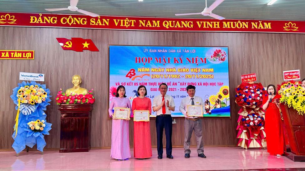 Sáng ngày 19/11/2025, UBND xã Tân Lợi Họp mặt kỷ niệm 43 năm ngày Nhà giáo Việt Nam (20/11/1982 - 20/11/2025) và Sơ kết 05 năm thực hiện Đề án “Xây dựng xã hội học tập giai đoạn 2021 - 2030”.Đồng chí Dương Thanh Huân, Tỉnh ủy viên, Bí thư Đảng ủy, Chủ tịch HĐND