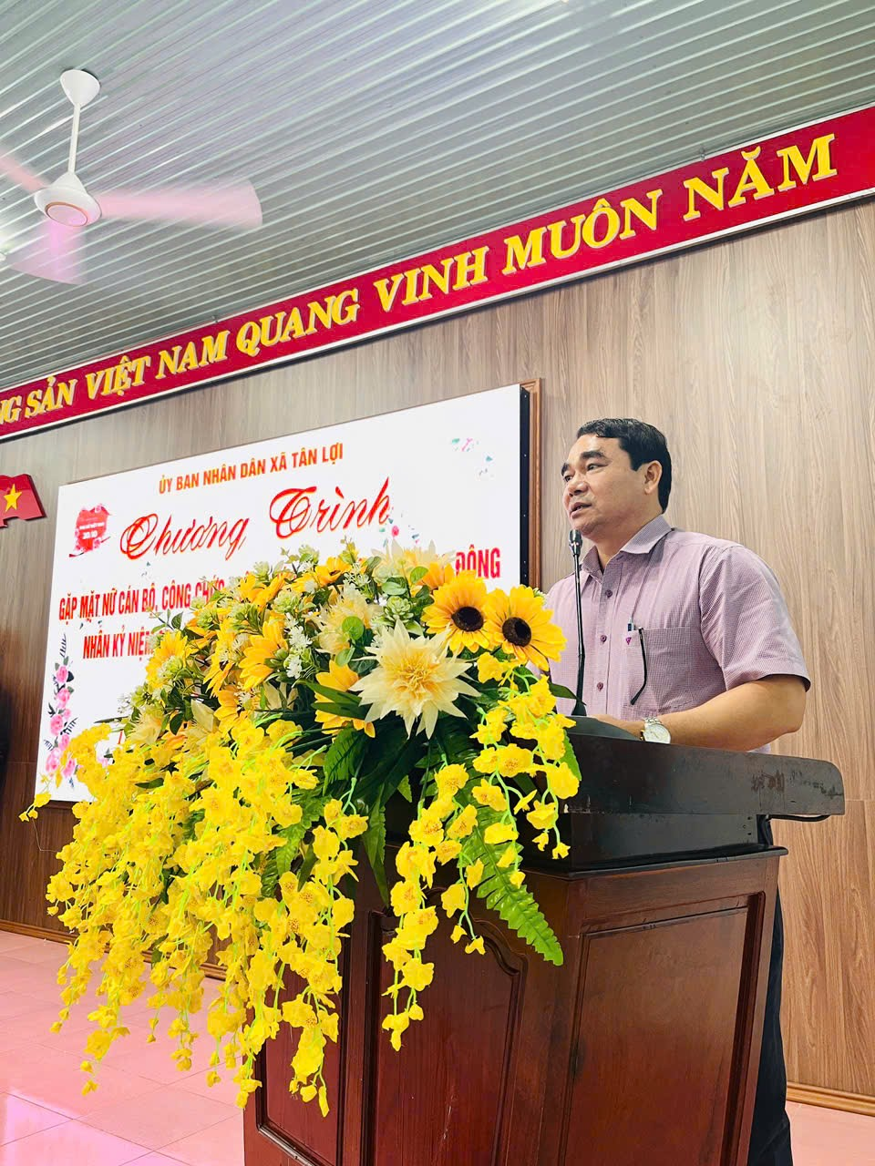 “Trong mọi lĩnh vực công tác, các chị em luôn thể hiện tinh thần trách nhiệm, năng động, sáng tạo, tận tụy với công việc, hoàn thành tốt nhiệm vụ được giao, góp phần quan trọng vào thành tích chung của xã Tân Lợi. Mong rằng trong thời gian tới, các chị em tiếp tục phát huy truyền thống tốt đẹp, giữ vững phẩm chất người phụ nữ Việt Nam thời kỳ mới - tự tin, tự trọng, trung hậu, đảm đang.”