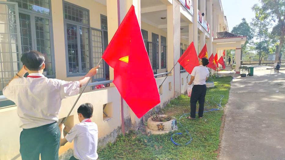 Đặc biệt, thầy và trò Trường TH&THCS Tân Hưng đã cùng nhau trang hoàng khuôn viên nhà trường với những lá cờ đỏ sao vàng rực rỡ. Trong không khí rộn ràng những ngày giáp Tết, hình ảnh các em học sinh hân hoan treo cờ Tổ quốc dọc cổng trường và hành lang lớp học không chỉ tạo nên diện mạo khang trang, tươi mới cho nhà trường mà còn góp phần giáo dục truyền thống cách mạng, bồi đắp lòng tự hào dân tộc, đẩy mạnh các phong trào “Uống nước nhớ nguồn”, “Tôn sư trọng đạo” nhân dịp Tết cổ truyền của dân tộc.