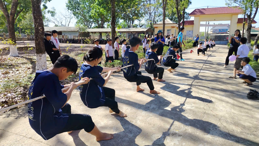 Bên cạnh hoạt động trao quà, các em học sinh còn được tham gia nhiều trò chơi dân gian, trò chơi vận động ngay tại sân trường, tạo sân chơi lành mạnh, an toàn, tiết kiệm, giúp các em có thêm niềm vui trước kỳ nghỉ Tết Nguyên đán.