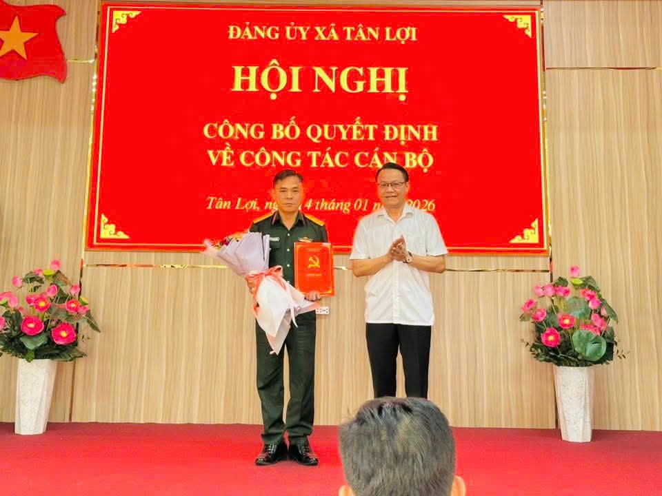Chiều nay (14/01), Chiều nay, Ban Thường vụ Đảng ủy xã Tân Lợi tổ chức hội nghị công bố Quyết định của Ban Thường vụ Tỉnh ủy về việc chỉ định, bổ sung đồng chí Nguyễn Thanh Lâm – Chỉ huy trưởng Ban Chỉ huy Quân sự xã Tân Lợi tham gia Ban Chấp hành Đảng bộ xã, Ban Thường vụ Đảng ủy xã Tân Lợi, nhiệm kỳ 2025–2030.