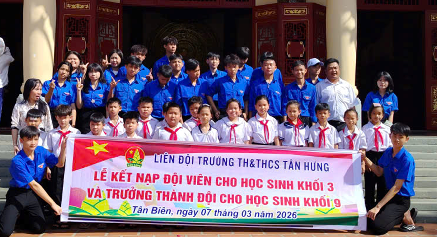 Nhằm đổi mới phương pháp giáo dục, gắn lý thuyết với thực tiễn và giáo dục truyền thống cho học sinh, ngày 07/3/2026, Trường TH & THCS Tân Hưng phối hợp Trung tâm Hoạt động Thanh thiếu nhi tỉnh Đồng Nai tổ chức Hoạt động trải nghiệm về nguồn, giáo dục truyền thống, văn hóa, lịch sử cho học sinh.