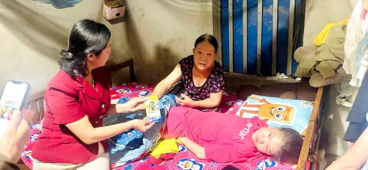 Tại giường bệnh của chị Hoàng Nông Thiết, đồng chí Ngô Thị Thanh Chung đã ân cần thăm hỏi và tặng chị Thiết 1 triệu đồng; Đại đức Thích Thánh Trí trao tặng số tiền 50 triệu đồng do gia đình em Võ Hạo Nam chia sẻ từ nguồn vận động của các nhóm thiện nguyện và phật tử Chùa Pháp Huyền ủng hộ.