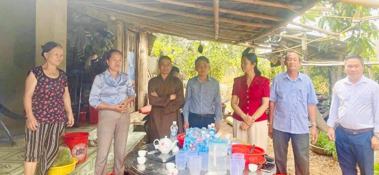 Cùng đi, có Đại đức Thích Thánh Trí – Trụ trì chùa Pháp Huyền, đồng chí Phạm Hoàng Long – UVBTV, Chủ nhiệm UBKT Đảng ủy, đồng chí Thiều Thị Thảo – ĐUV, Chủ tịch Hội LHPN xã, đồng chí Lê Võ Văn Phúc – ĐUV, Phó trưởng Ban Xây dựng Đảng, đồng chí Phạm Quang Thắng – Phó Chánh Văn phòng Đảng ủy cùng đại diện Chi bộ ấp 5.